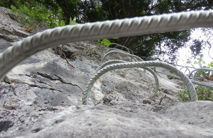Un nouveau virage sur la gouche cette fois pour attaquer la 2ème vire. Là, c'est le gaz qui te prend à la gorge. Ce n'est pas très haute, mais assez aérien surtout que tu dois regarder en bas pour poser tes pieds. Une manoeuvre à nouveau à bras pour changer de direction et attaquer la dernière montée vers un arbre.