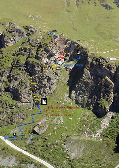 De par son emplacement idéal, il est possible de suivre l'évolution des grimpeurs depuis le couronnement du barrage.