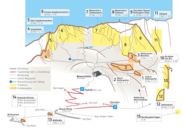 Mais si tu n’aimes pas marcher, continue par la route payante en direction de Nirwarch (compte Frs. 10.--) et roule jusqu’à la première épingle à cheveux. Il y a un parking à proximité.
