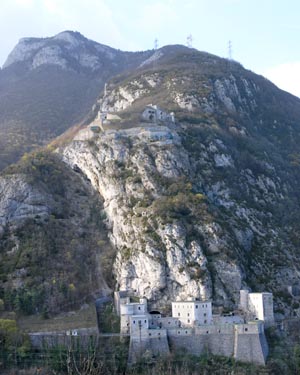 La via ferrata se déroule dans la raide paroi calcaire qui sépare le Fort inférieur du Fort supérieur.