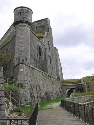 Tu arrives ensuite au pied de la Muraille du Fort Supérieur que tu parcours sur une bonne vire jusqu'au fossé, sous le pont levis.