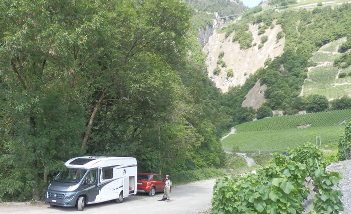 Laisse ta voiture dans les 3 parkings sous peine de te prendre une amende. Mieux, tu peux la laisser au sommet/arrivée de la via, vers la passerelle de Farinet. Tu descends jusqu'au départ (en passant dans les vignes). Cela t'évite de te tapper 2x le chemin pour aller aux parking des bains.