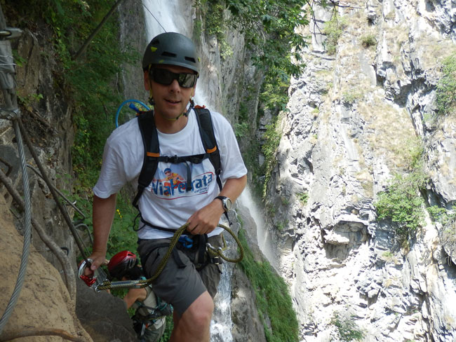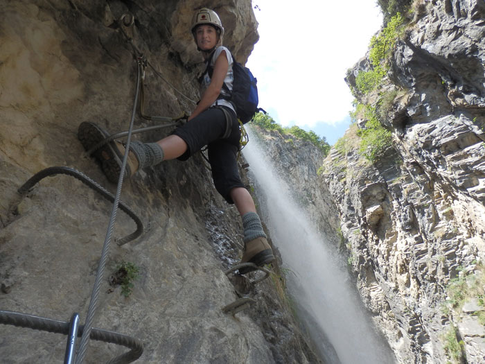 La via monte dans les Gorges de la Salentze avec un joli passage proche d'une cascade (et dans la cascade durant l'été ou après les orages). Cette via ferrata n'est pas faite pour les débutants et la 3ème partie est uniquement réservée aux gros bras à cause de dévers très costauds. Je répète, la 3ème partie n'est pas faite pour ceux qui surestiment leurs forces! Donc si tu n'as pas d'entraînement et tu n'as pas/plus trop de force dans les bras, tu n'y vas pas car c'est hyper difficile.