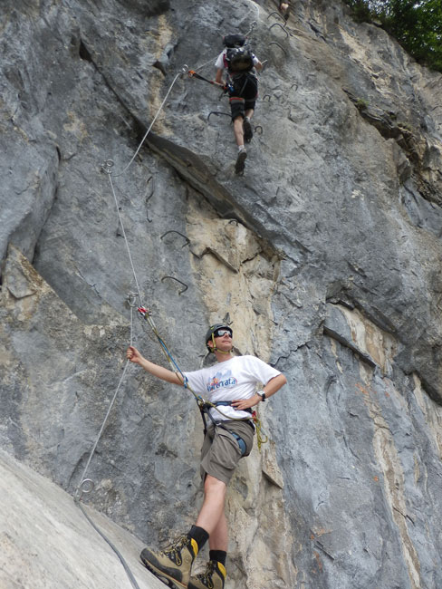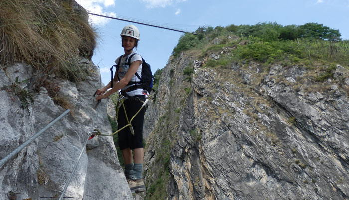 Si tu débutes la via ferrata, n'y va pas et entraîne-toi sur une plus facile. Sur la partie finale, il y a eu pas mal de sauvetages héliportés à cause d'abrutis qui ont voulu jouer aux durs. Comme la paroi est très escarpée, tu mets la vie des sauveteurs en jeu, tu vas te retrouver avec une grosse facture et tu discrédites la communauté des via ferrateurs.