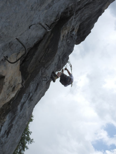 La troisième partie est Extrêmement Physique. Si tu n'es pas bien, prends la sortie car une fois que tu t'élances tu ne peux pas revenir et il y a 3 dévers qui sont maousses costauds. Une longe fixe supplémentaire te sera d'une bonne aide.