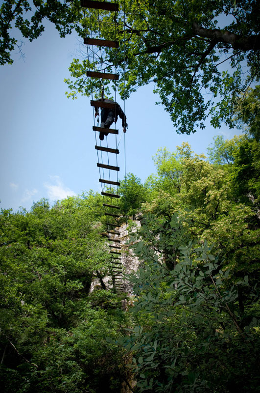Tu croises de nombreux ponts de singe, des ponts népalais, une tyrolienne, une grotte...