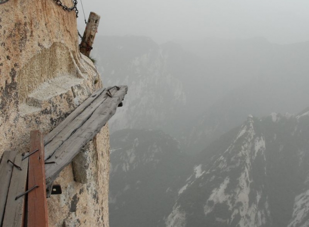 L'une des cinq montagnes sacrées de Chine et la plus escarpée entre toutes : le Mont Hua Shan.Peu fréquenté par les touristes, le site est très apprécié des Chinois qui viennent ici en pèlerinage. La tradition taoïste promettant l’immortalité au sommet. Les chinois partent de nuit, à la lumière des lanternes, pour arriver au sommet au lever du soleil.