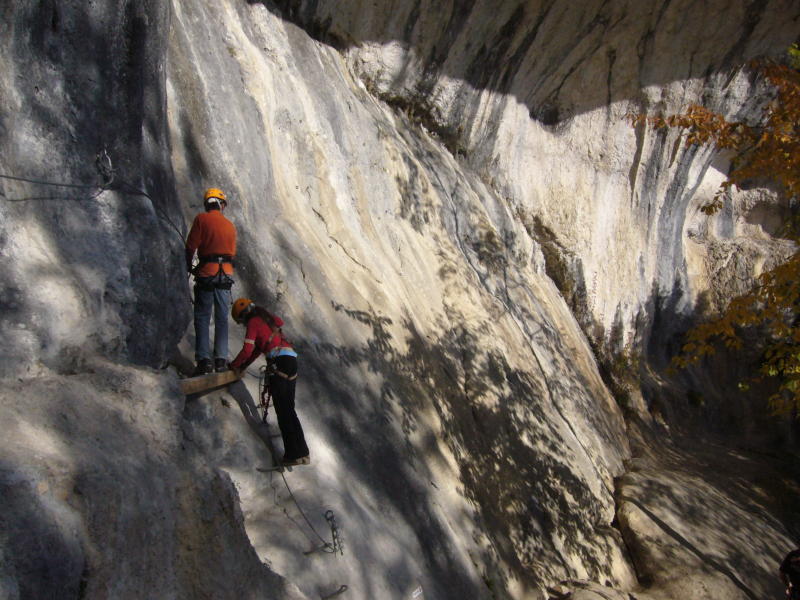 Conseils ViaFerrataPrends de bonnes chaussures surtout que ça patine quand c'est humide.