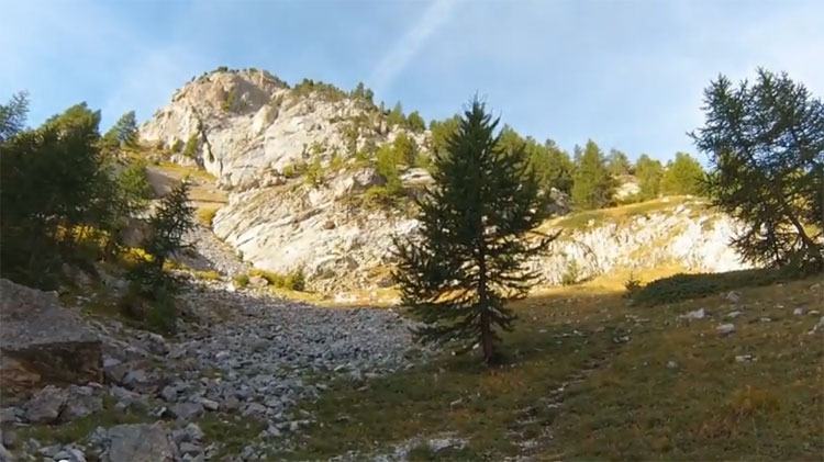 Tu passes, sur ta gauche, un passage en traversée pour te retrouver au coeur de la paroie pour attaquer une montée raide qui arrive dans une partie herbeuse.