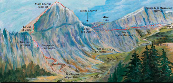 Parking de la Doriaz : 1h de marche d’approche. Itinéraire en balcon, parfois escarpé