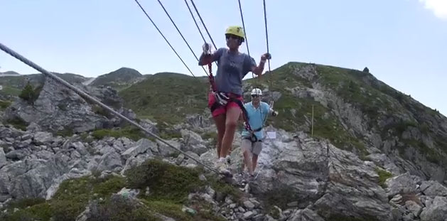 Cette via ferrata est très ludique et tu la débutes par un "entraïnement" avec un pont de singe qui bouge.