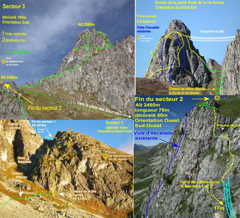 3 secteurs différents avec une Tyrolienne qui n'est pas obligatoire.