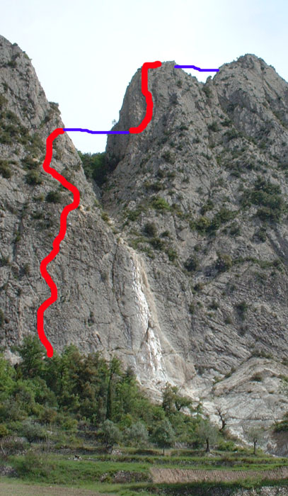 En remontant une goulotte calcaire en versant nord, tu arrives au premier sommet.
