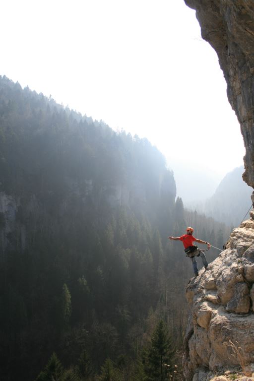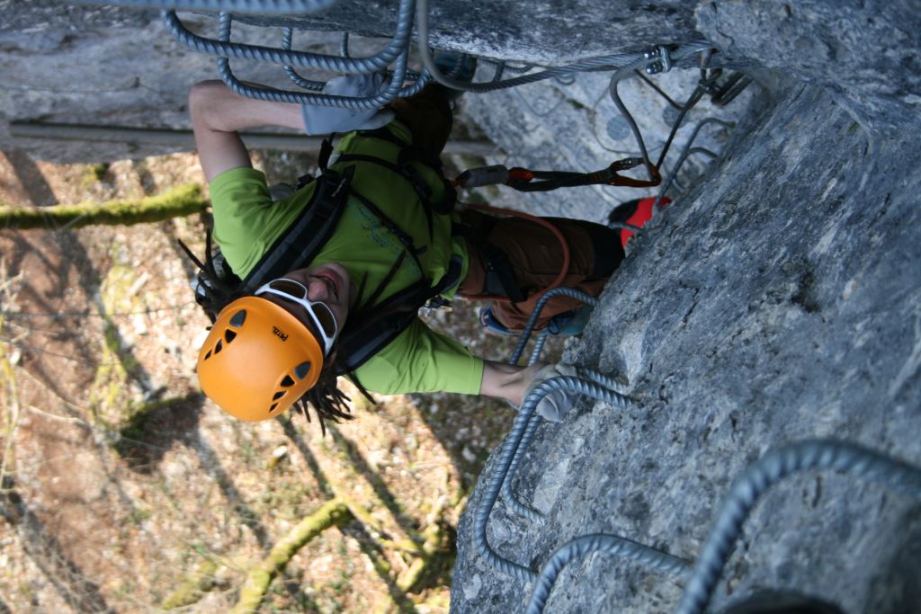 Conseils ViaFerrataLe rocher est assez lisse, patiné. Si le temps est humide, ça glisse. S'il pleut, c'est risqué.