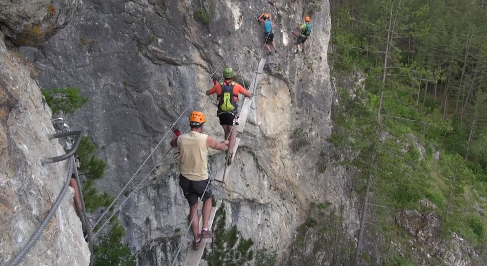 ViaFerrata Tips and TricksBig thrills guaranteed. If you are afraid of heights, avoid this via ferrata at all costs. If you have to choose between the two, the waterfall and the footbridge are already quite thrilling. Be wary of thunderstorms as they can make the waterfall swell. Take a sling with you so you can rest if you're feeling tired.