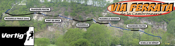 AccèsLa via ferrata est située sur les bords de l'Orne au hameau de La Cambronnerie. Voir la carte ci-dessus