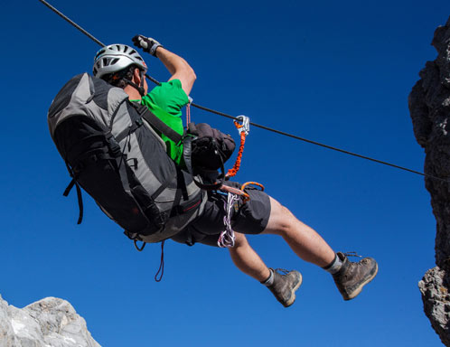 Helmet, Shoes, gloves and of course the via ferrata sets! Furthermore, we invited Jérome Nanchen for wise thougths between parents and kids in the via ferrata!