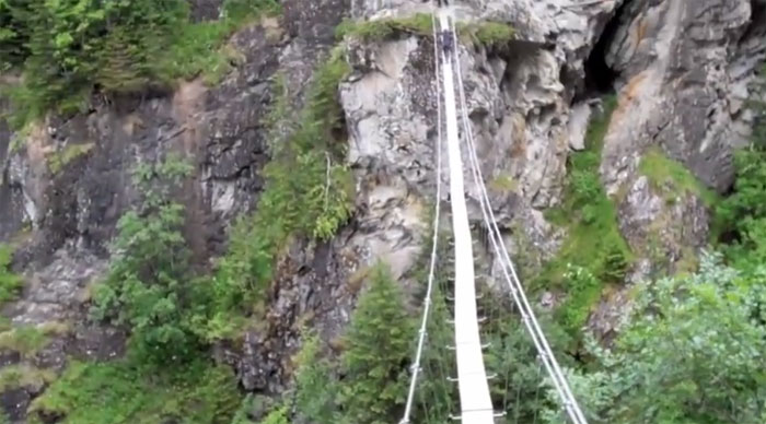 Adaptée pour la découverte de la ferrata et pour les débutants et les enfants. Un pont de singe qui bouge pas mal, une passerelle assez longue et une planche sont au menu.