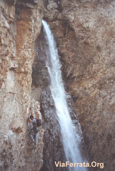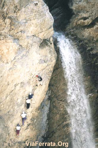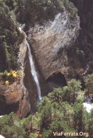 Laisse partir à droite le chemin de la cascade du trou de la Doria. Traverse un torrent et après une remontée et quelques lacets, tu rejoins la grotte à Carret.Via Ferrata