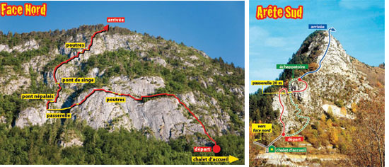 2 via ferrata : une Arête Sud avec des paysages de montagne pour l’initiation (enfants à partir de 7 ans) et une Face Nord pour une expérience au vide et les plus sportifs.