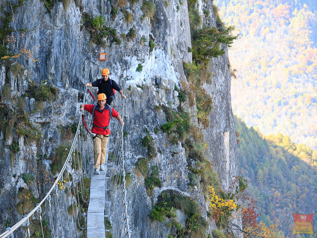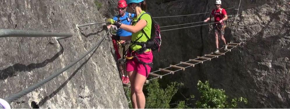 This via climbs through the Salentze Gorges and there is a beautiful section next to a waterfall (and in the waterfall during summer or after thunderstorms). This via ferrata is not made for beginners and the third part is reserved for those with strong arms as the overhang is very tough. I repeat myself, the third part is not for those who overestimate their strength! So if you haven't been training and you do not have much/any arm strength don't go because its extremely difficult.