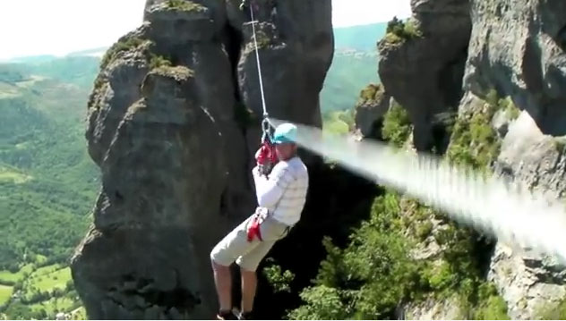 Après cette grande tour et deux itinéraires bien différents mais assez vertigineux, on trouve la tyrolienne de 50 m (facultative).